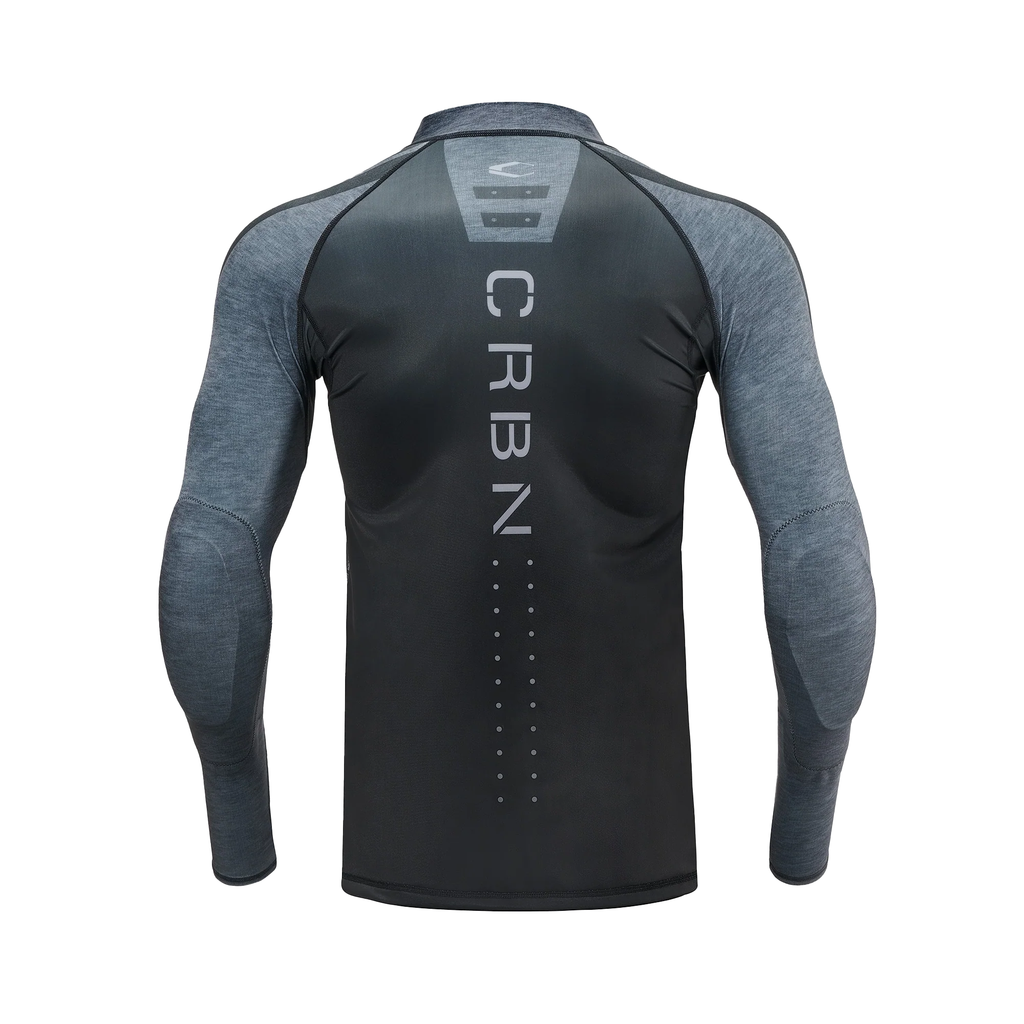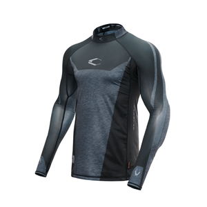 The lightweight compression protective top is an upper body layer composed of a moisture wicking 85% polyester 15% spandex technical blend to improve breathability and range of motion. The long sleeve shirt is designed to stay in place, provide precise protection and cool the body during extreme activity. Garment features built in dual layer elbow pads and gauntlet style thumb/ wrist loops.