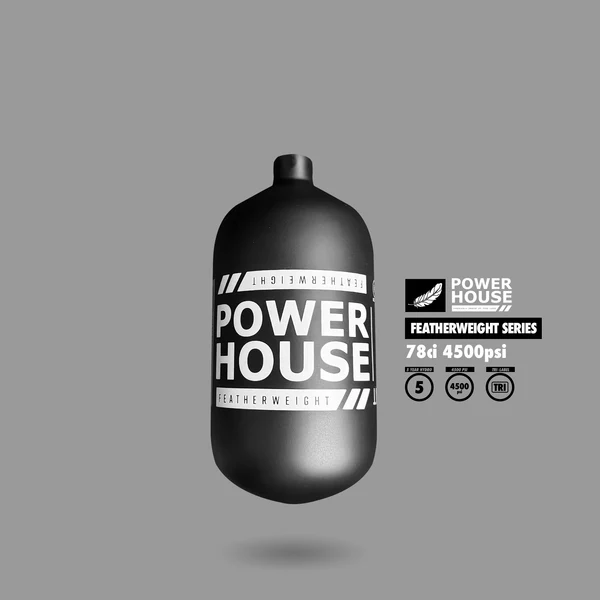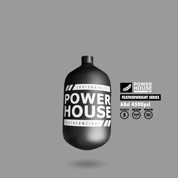 Powerhouse™ presenta con orgullo su línea de cilindros de aire “Featherweight”. Los cilindros Featherweight son los tanques de paintball más livianos disponibles en el mercado hoy en día. Todos los tanques Powerhouse™ cuentan con la certificación Tri-Label UNISO. Este es el estándar más alto en paintball y cubre las certificaciones DOT y TC. Estas certificaciones permiten que estos cilindros se utilicen en cualquier parte del mundo.