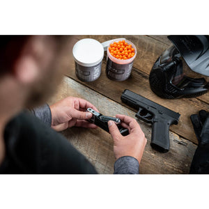 Ya sea que se utilice como marcador de respaldo o en modo de solo pistola durante el paintball MagFed, la pistola de paintball GLOCK 17 T4E satisface las necesidades de los competidores ambiciosos. El cargador de 8 rondas, que contiene bolas de pintura o bolas de pólvora en calibre .43, también se adapta a un cartucho de CO2 de 12 gramos que se puede cambiar sin herramientas en segundos en el campo. El manejo rutinario y el funcionamiento intuitivo son clave para la precisión. Con dimensiones precisas, el marcador GLOCK 17 Gen5 T4E ofrece un manejo familiar y compatibilidad con una amplia gama de accesorios y complementos para su contraparte de fuego real. Hay disponible un cargador de perforación rápida opcional; simplemente inserte un cartucho nuevo y perfórelo con un ligero golpe en la parte inferior del cargador.