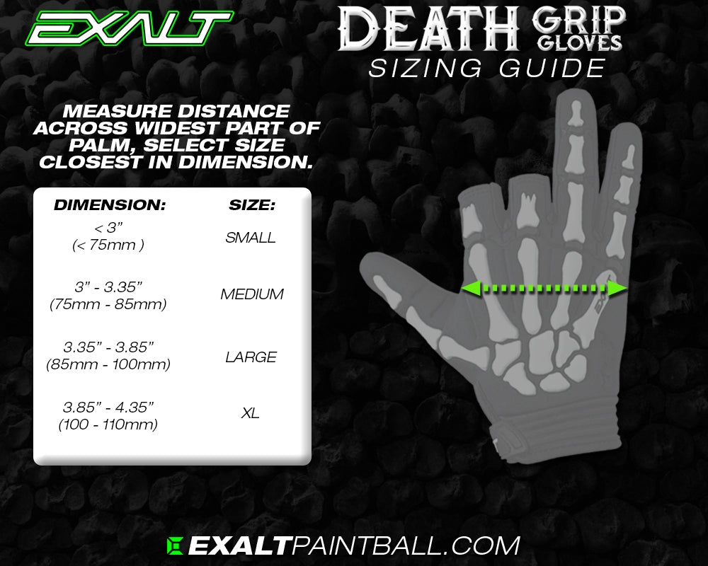 Nunca más volverás a preocuparte por perder el control de tu arma con los guantes Exalt Death Grip. La impresión de silicona de alta densidad en la palma combinada con una protección de goma ultraduradera para las manos significa que su arma y su empuñadura permanecen seguras independientemente de las circunstancias. La estructura ósea de goma contorneada en 3D absorbe los impactos y se flexiona con los movimientos de la mano. La palma de cuero sintético y el exterior de neopreno protegen sus manos tanto de entornos de juego difíciles como de pintura entrante.