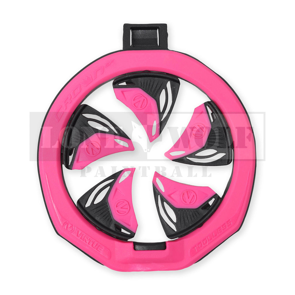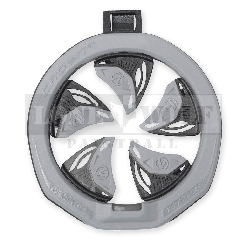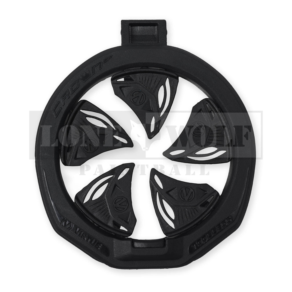 The Virtue CrownSF III Speed Feed is an upgrade of the revolutionary spring finger speed feed design that is not only more durable, but at a lower price point as well. Fast, obstruction free reload performance that keeps the paint inside on hard dives, and is more impact resistant than the original CrownSF. The CrownSF III is compatible with the Spire III, IV, V, CTRL2, CTRL, IR, IR2, and any other loader that has copied our speed feed design.