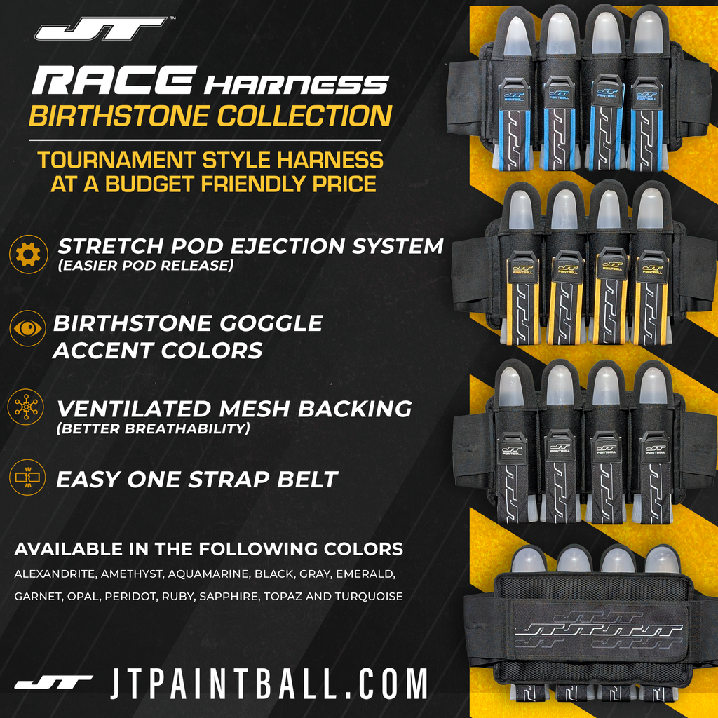 The JT Race 4 Pod Paintball Harness is great for new players who want a speedball style harness without breaking the bank!
