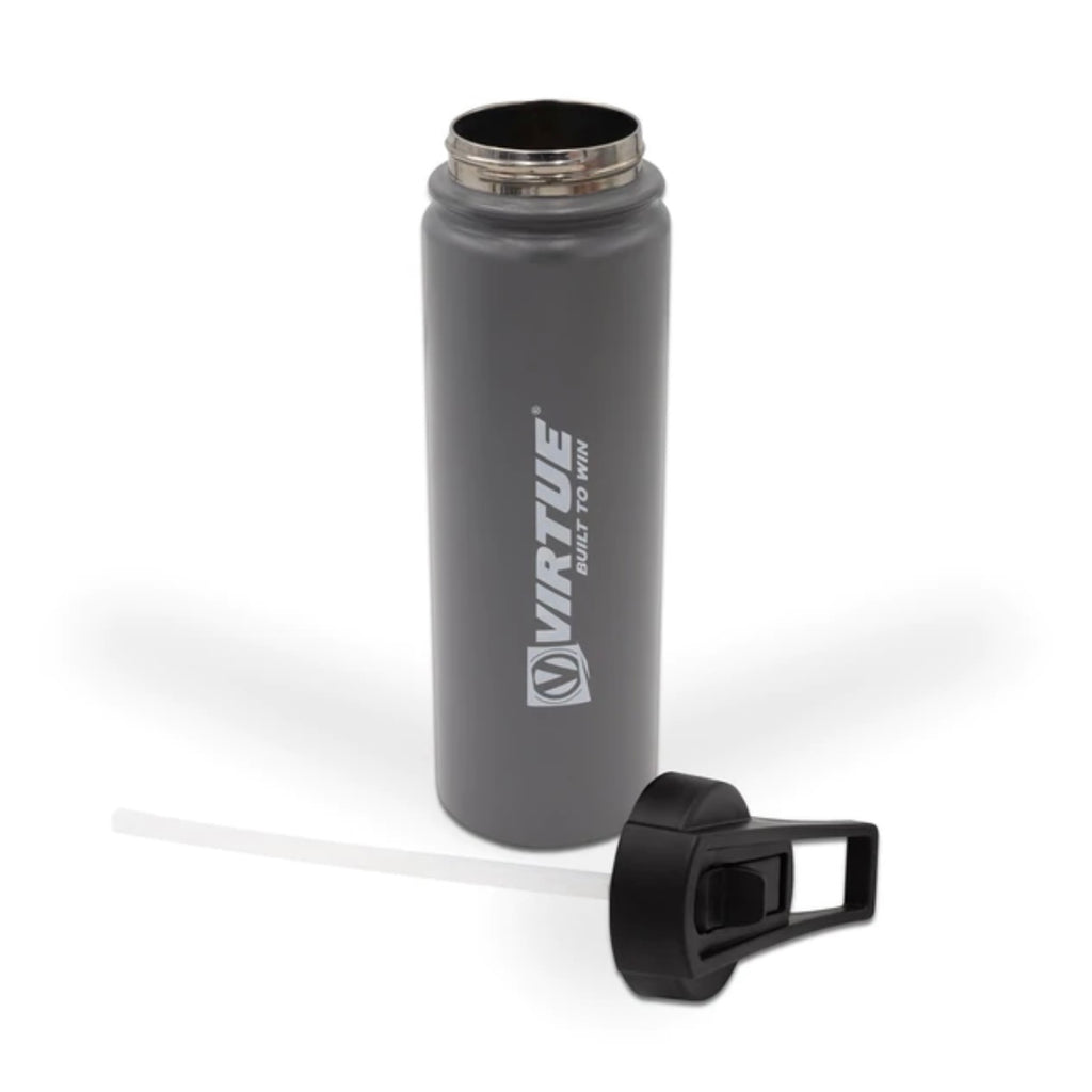 The perfect reusable bottle for sporting events, outdoor adventures, road trips, or picnics. Easy to drink from, and easy to pour from, this bottle keeps your drinks cool and safe. The Virtue 24Hr Cool Water Bottle is also powder coated, which gives you a solid grip and prevents condensation from forming on the outside of the bottle. The double-walled, vacuum insulated body will ensure that your beverage maintains its temperature all day long.